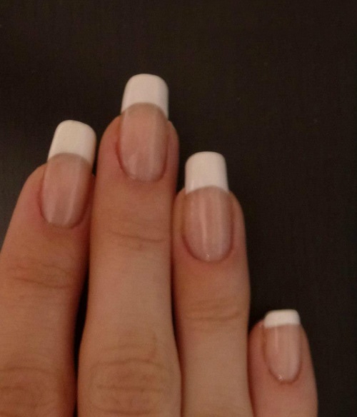 Voici ma première french manucure. J'ai attendu longtemps avant d'en faire une car je voulais avoir les ongles. J'ai enfin atteint les 2cm :D Mais pas pour longtemps car une partie de badminton a fait un carnage... Donc voici une rare photo de moi avec les ongles longs.
